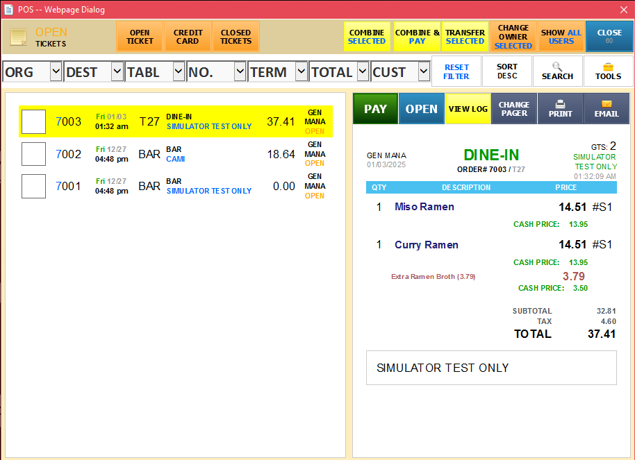 QSR: Sales Screen > Ticket button on top left corner > CREDIT Tickets > select ticket