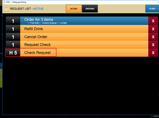 A request will appear on the POS and will notify servers. (See Table Kiosk Handling Request for taking care of request)