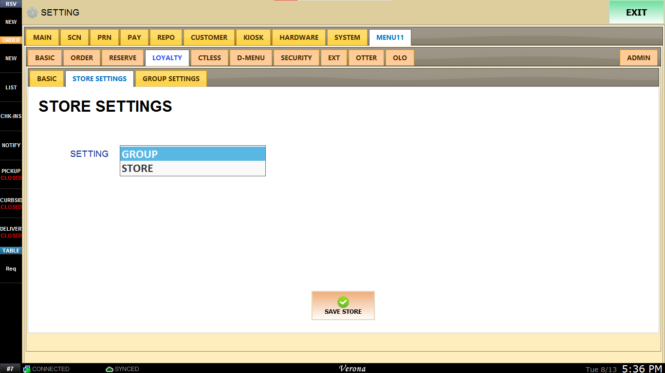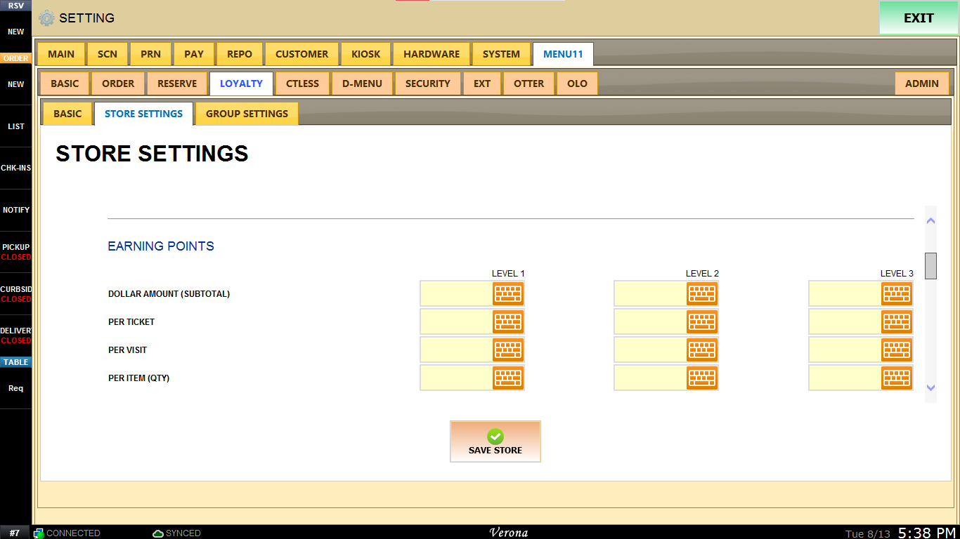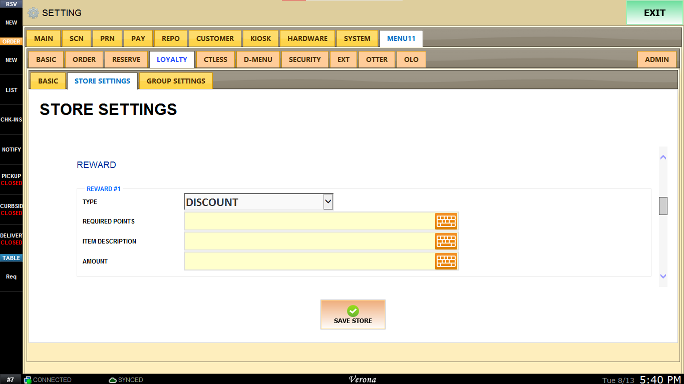 In order to configure the Verona Loyalty system, you'll need to access Loyalty setting from Verona setting