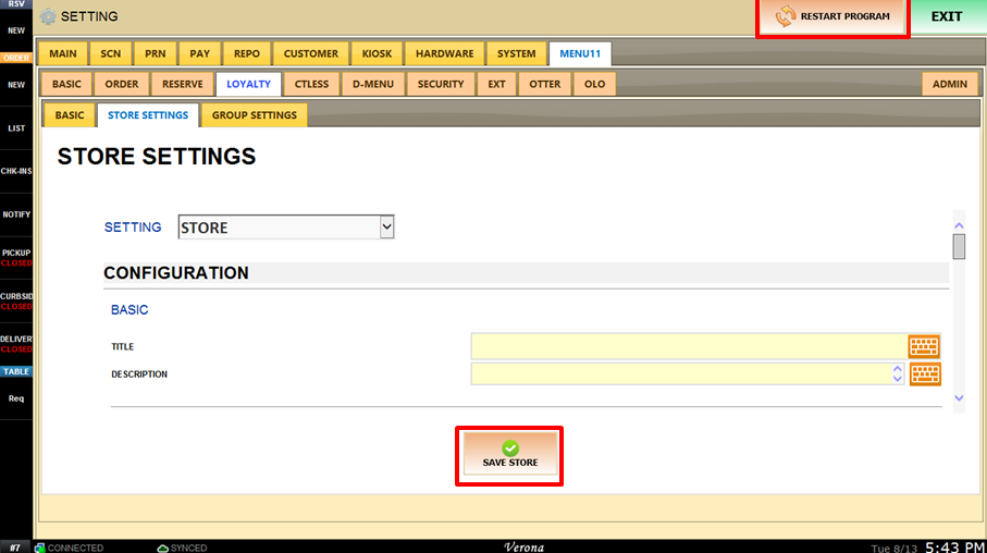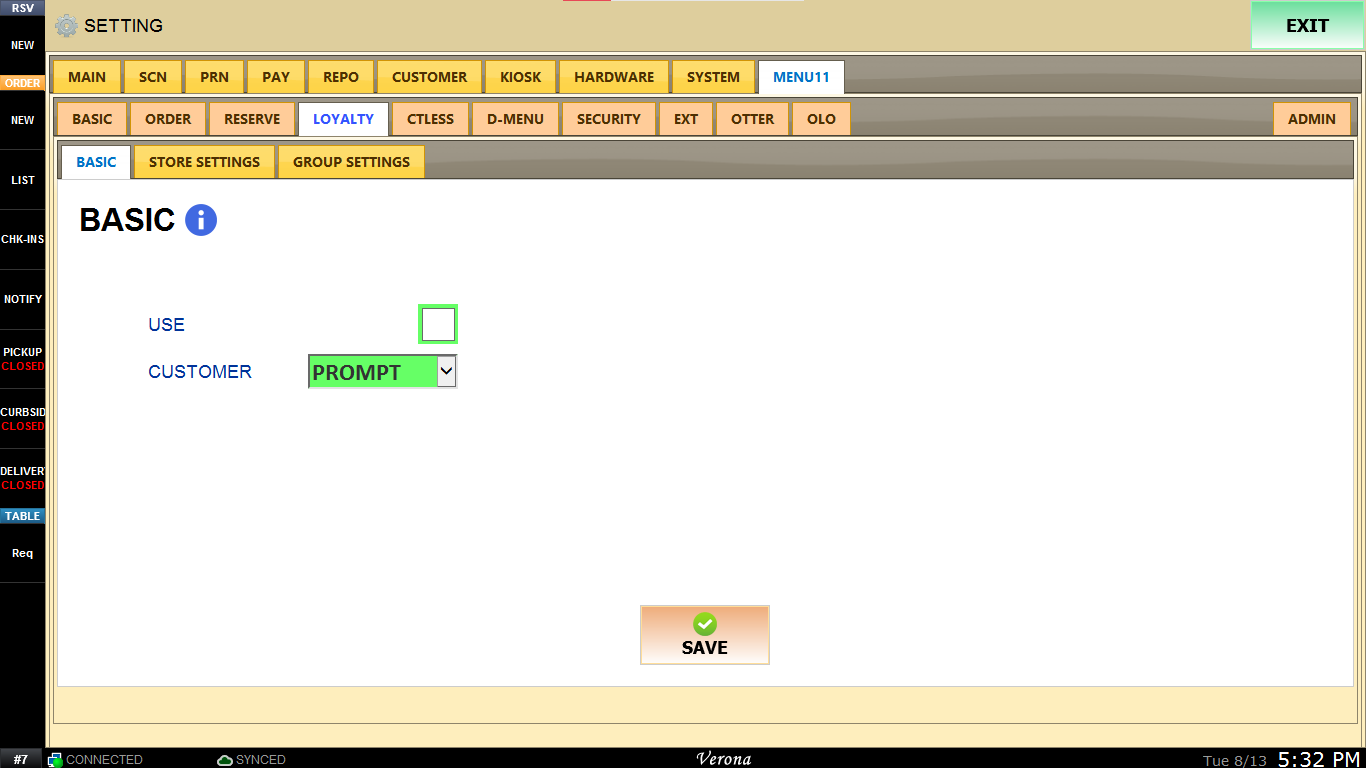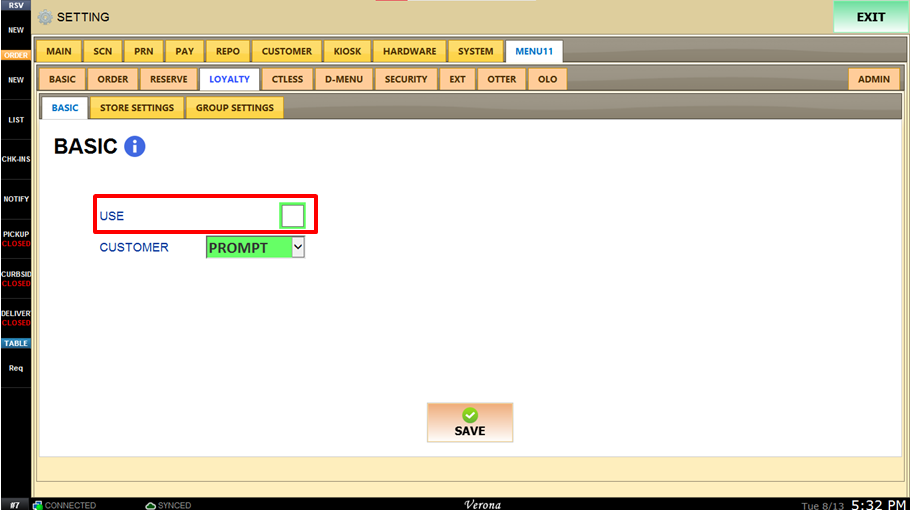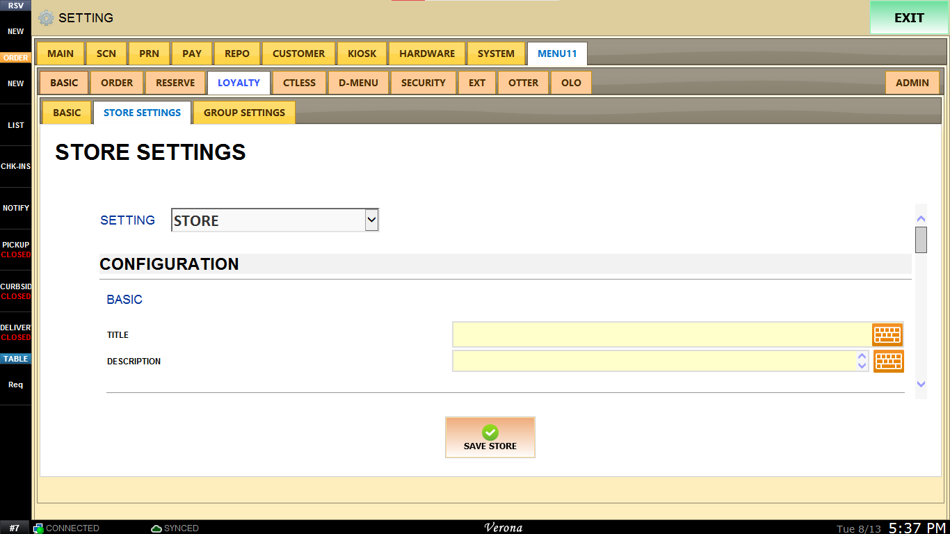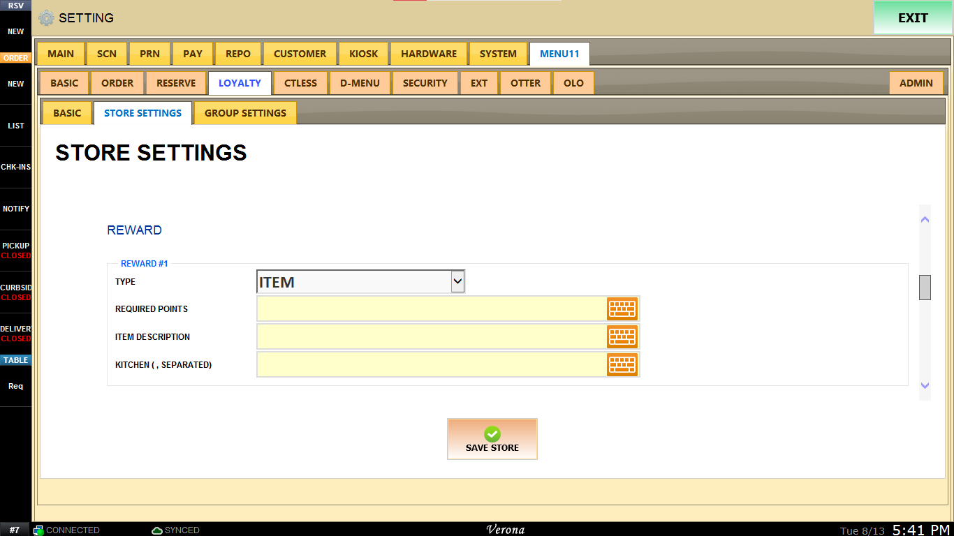 In order to configure the Verona Loyalty system, you'll need to access Loyalty setting from Verona setting