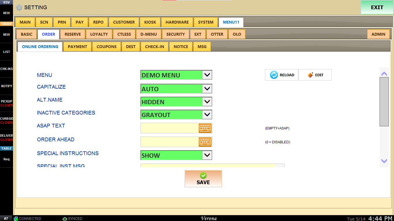 - Inputting 0 will disable order ahead function and will only allow customer to order ASAP.