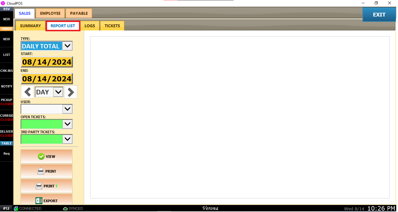 1. Navigate to MENU > REPORTS > SALES > REPORT LIST.