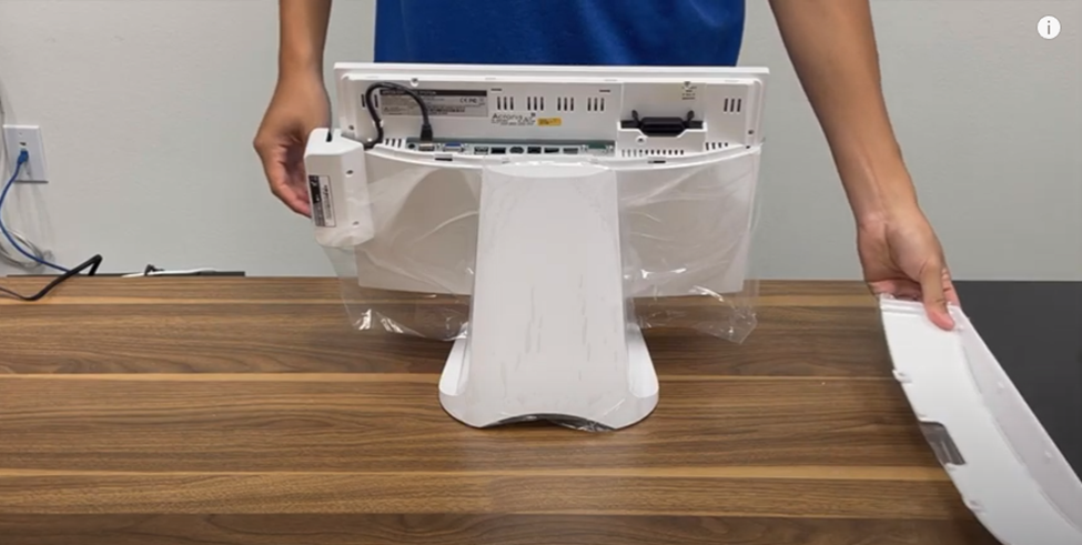 2. Locate the two notches at the bottom of POS stand and push them outward to unclip them. Once the notches are unclipped, slide up first and down next to remove the back cover.